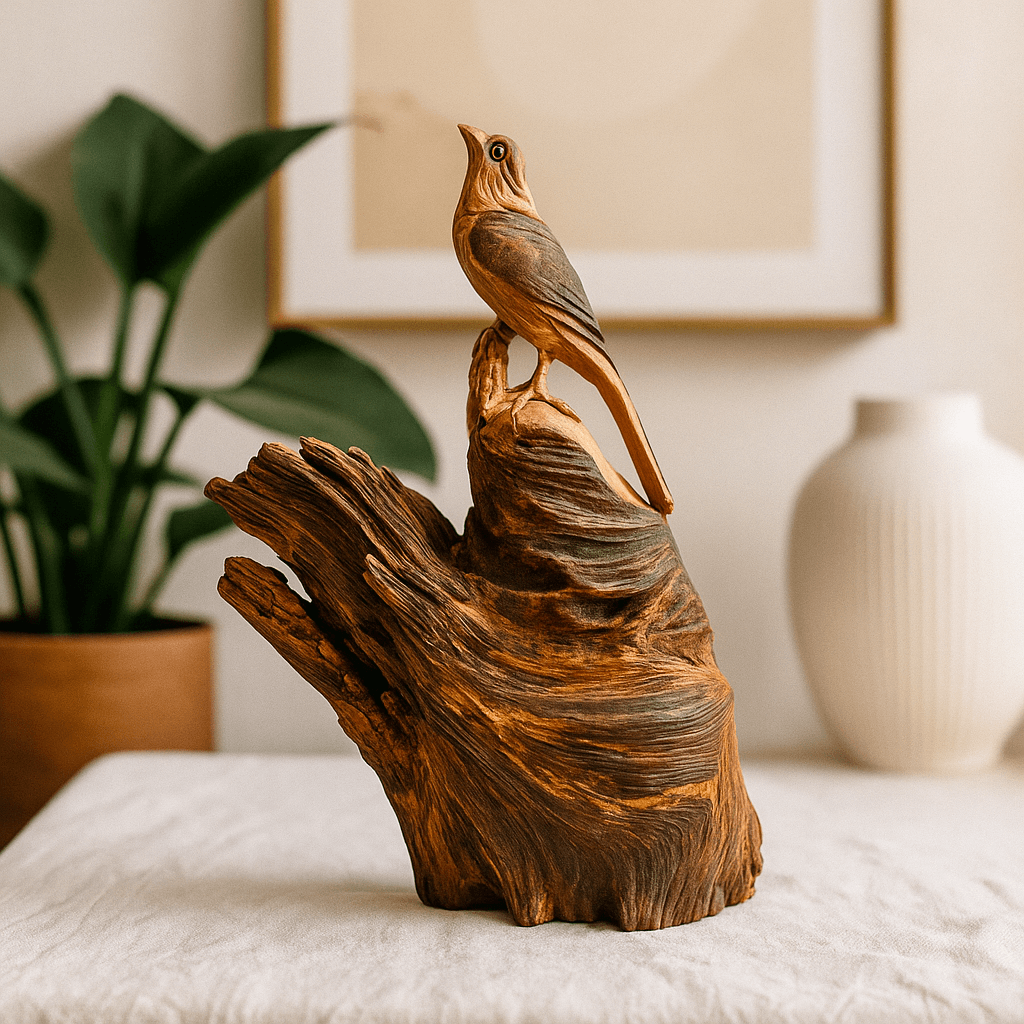 Celebrate the harmony of art and nature with our Hand-Carved Erosion Wood Bird Sculpture, a stunning representation of freedom and organic beauty. Expertly sculpted from natural erosion wood, this one-of-a-kind piece captures the graceful motion of a bird in flight, perched atop a base that mimics the raw elegance of driftwood formed by time and tide.