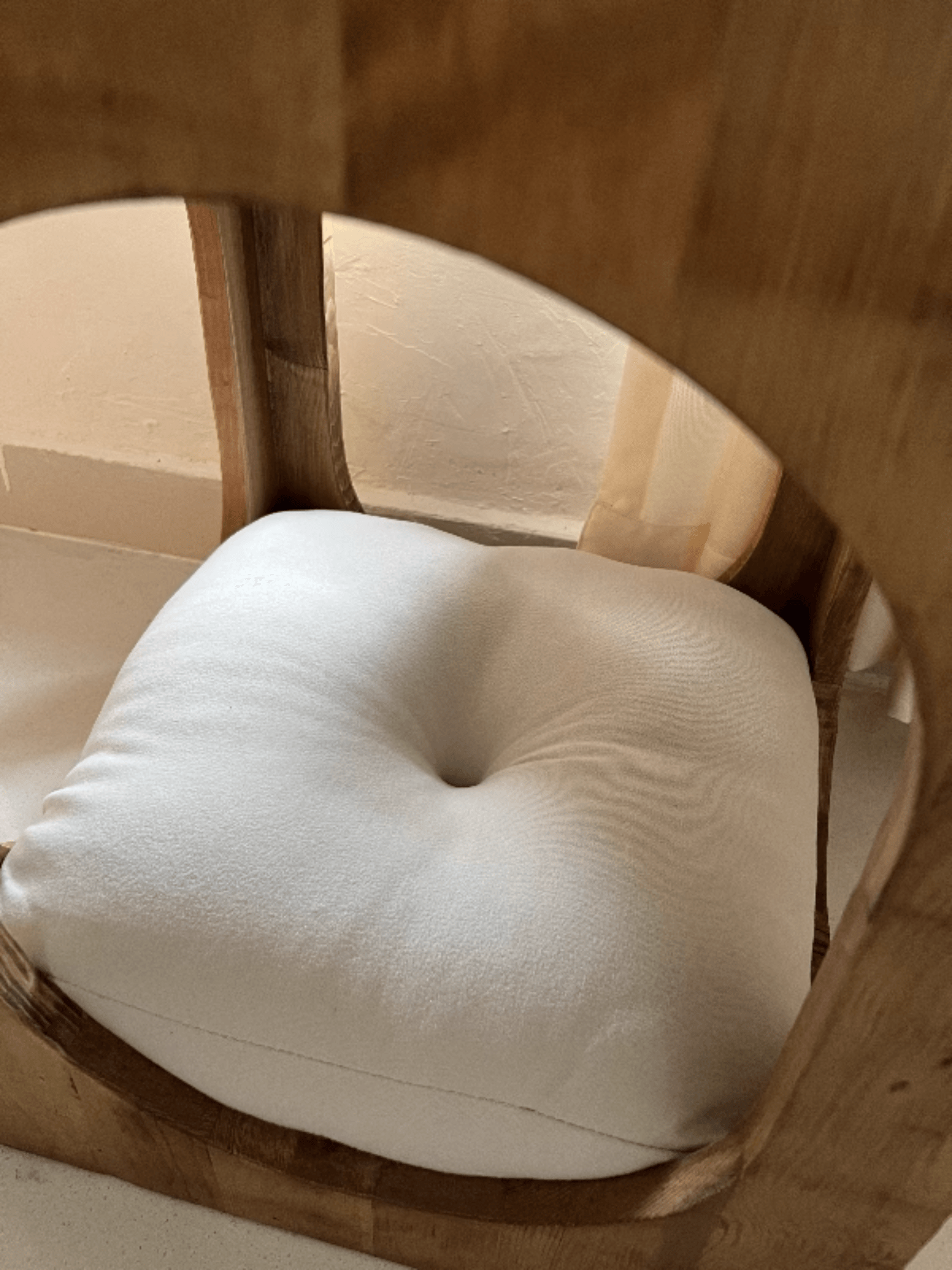 This handcrafted design offers a natural rustic charm, showcasing the beautiful grain and warm tones of pine wood, while providing a safe, private nook for your cat to relax. The soft included cushion enhances comfort, making it an ideal resting spot for your pet.